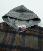 フード付きチェックシャツです。表面にUSEDブラッシュ加工を。