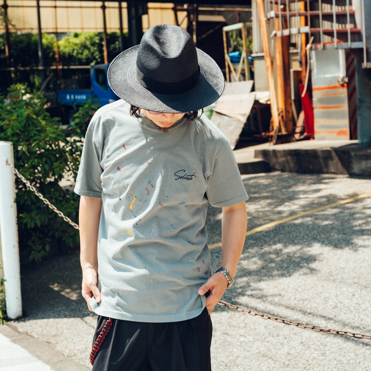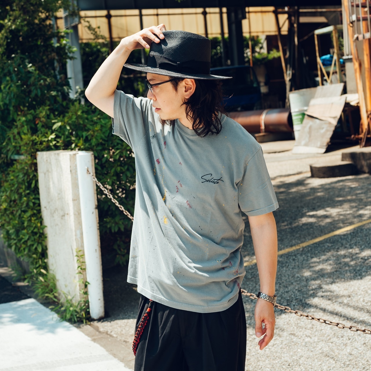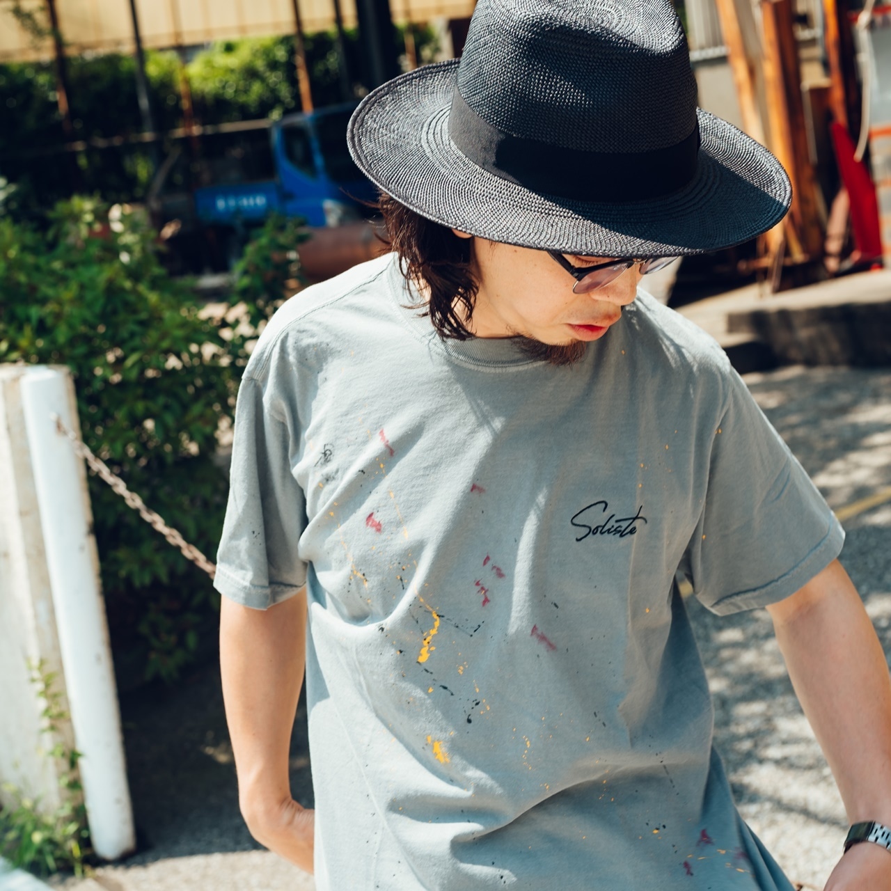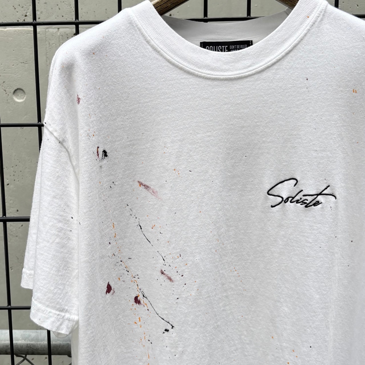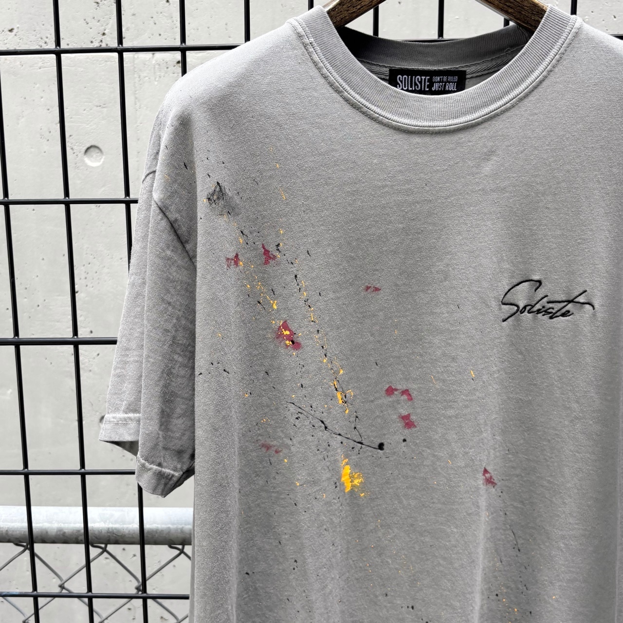 6.1 ozでピグメント加工を施し、手作業でペンキを載せたTシャツ。