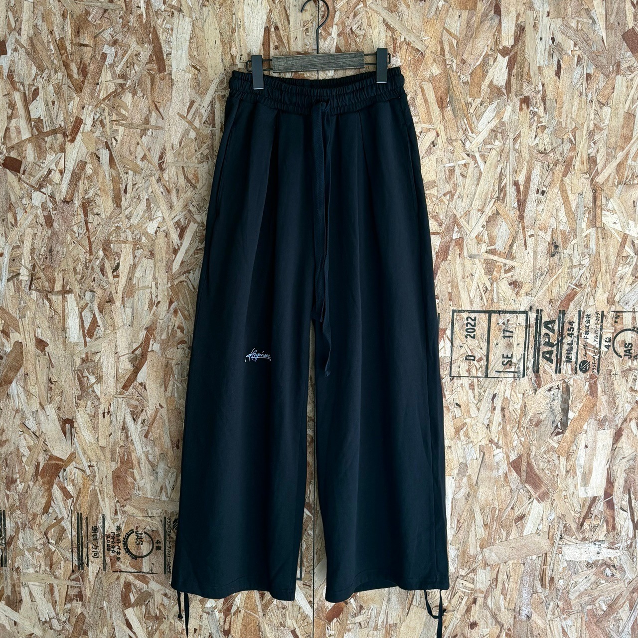 しっかりとした厚みとハリ感を備えた、度詰めコットン天竺素材のワイドパンツ。