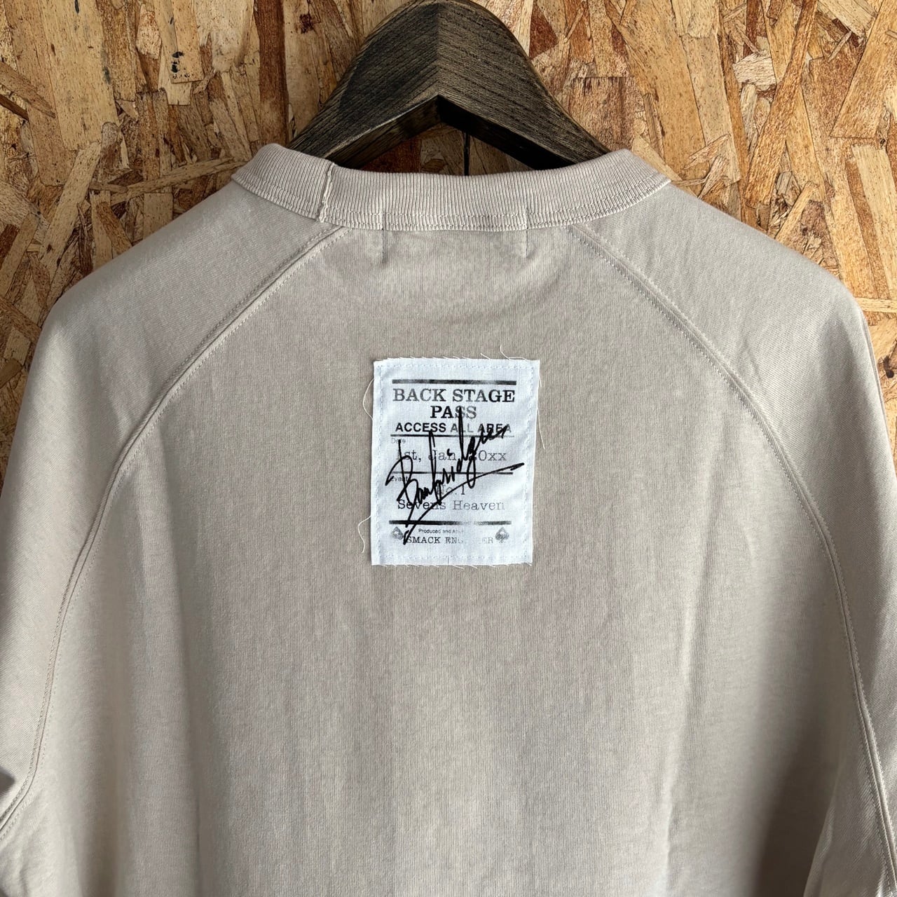 加工を加え仕上げた、天竺素材の7分袖ラグランTシャツ。