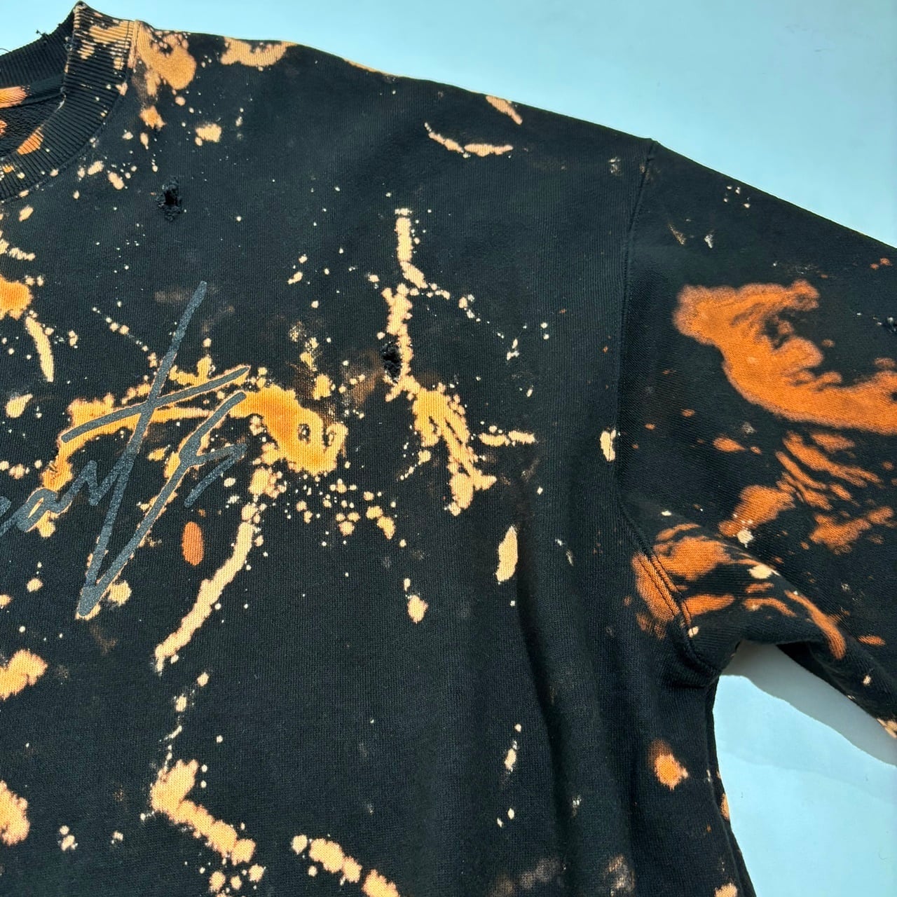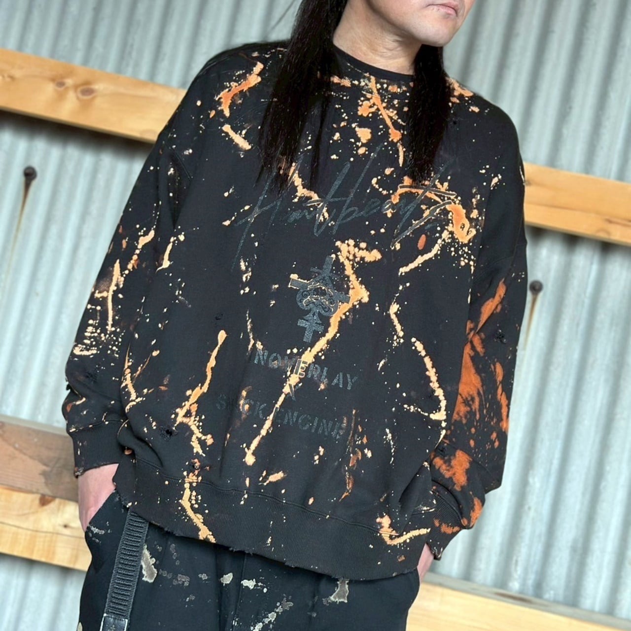BAN(SMACK ENGINEER)が、手作業で一着づつ、汚し・ブリーチ・ダメージ加工を施したコットン裏毛素材のオーバーサイズスウェット。