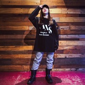 ステンシル風のロゴをプリントした綿天竺素材のロングスリーブTシャツ。