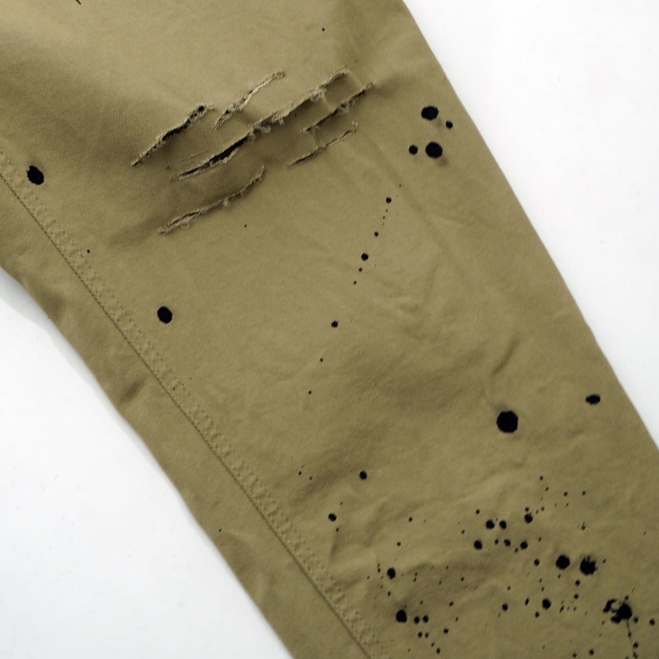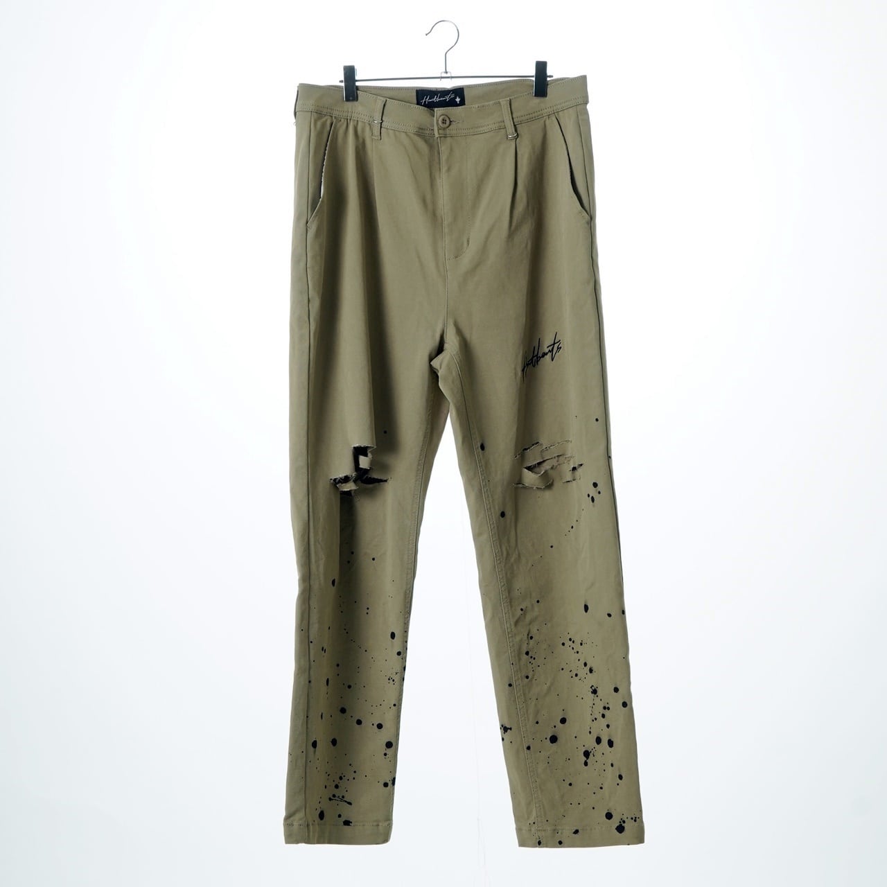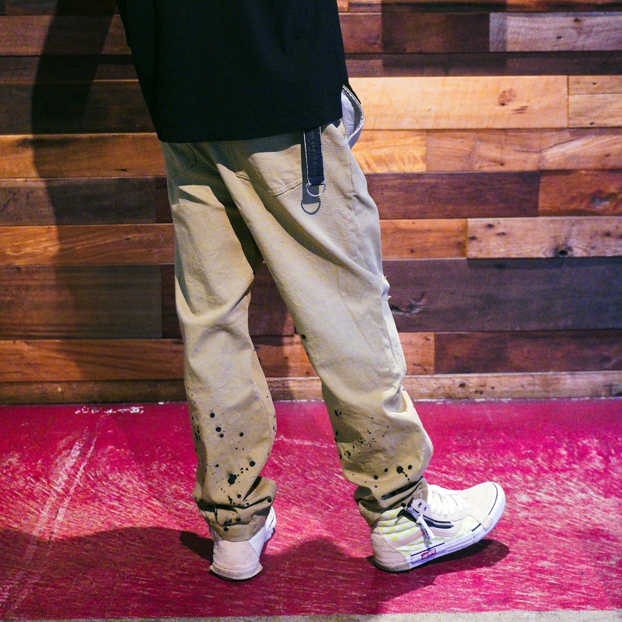 BAN (SMACK ENGINEER)が、一着ずつ手作業でダメージ&スプラッシュ加工を施したトラウザーズ。