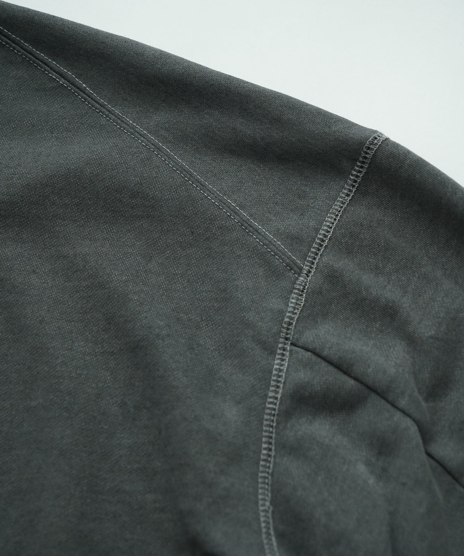 カットソーではあまり使用されない立体的なパターンを採用したVネックスウェットです。しっとり感あるミニ裏毛起毛を使用。