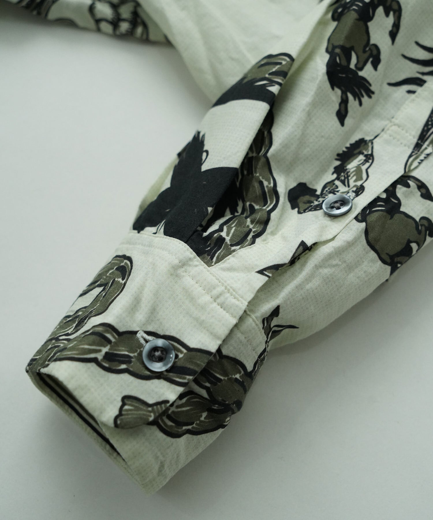 セルロース再生繊維 x コットン混合のオリジナル生地で仕立てた、ヴィンテージウェスタンバンダナ調の長袖シャツです。