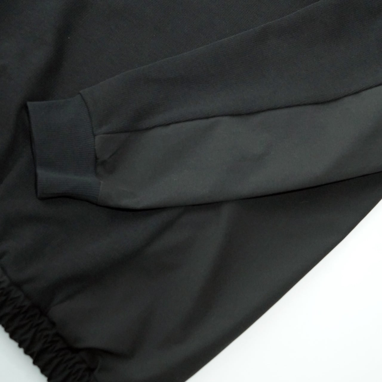 ボディにはしっかりと肉感のあるフライス生地を採用し、両脇部分をポリエステル素材で切り替えた独創的なデザインのプルオーバー。