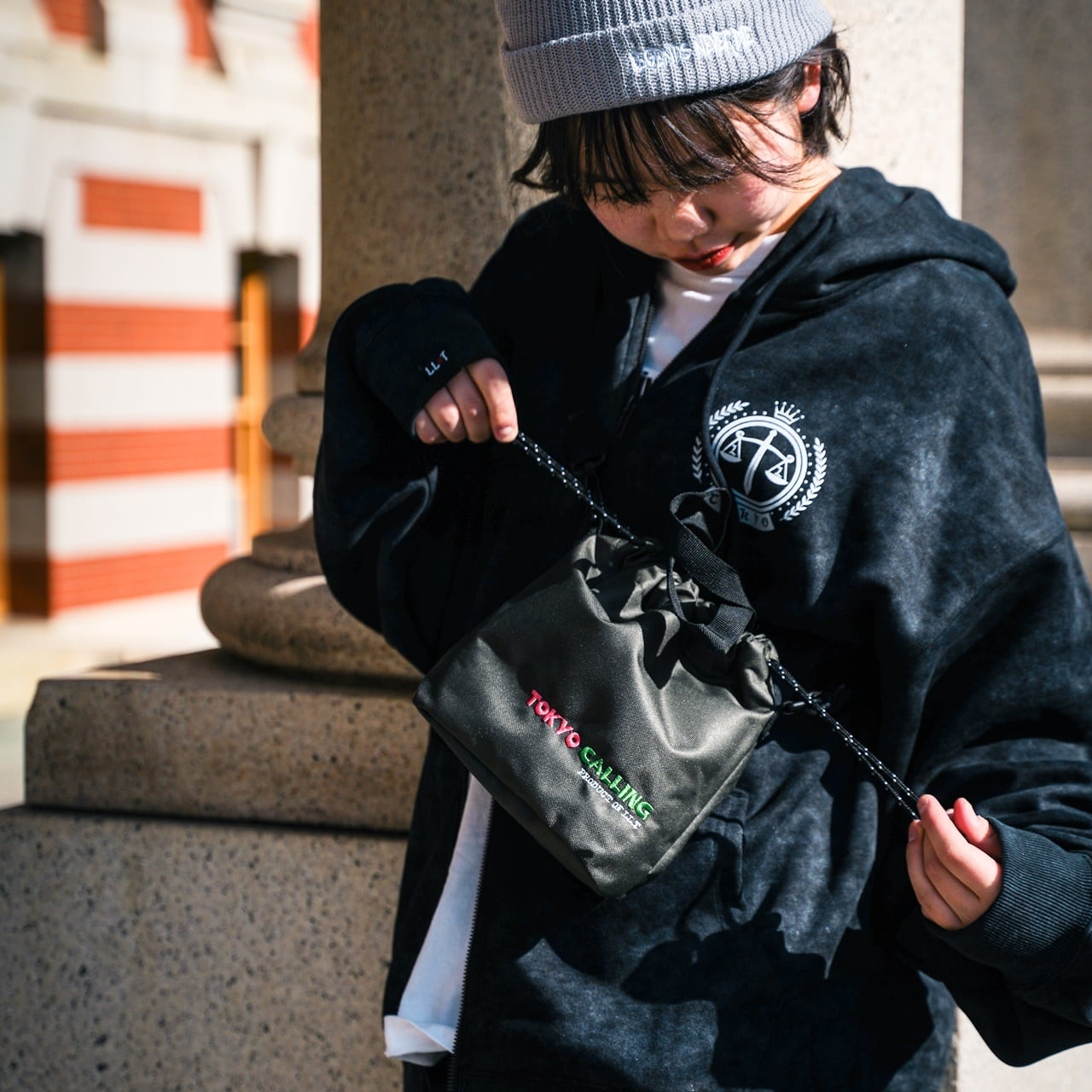 ワンポイントで新デザイン"TOKYO CALLING"の刺繍ロゴ。