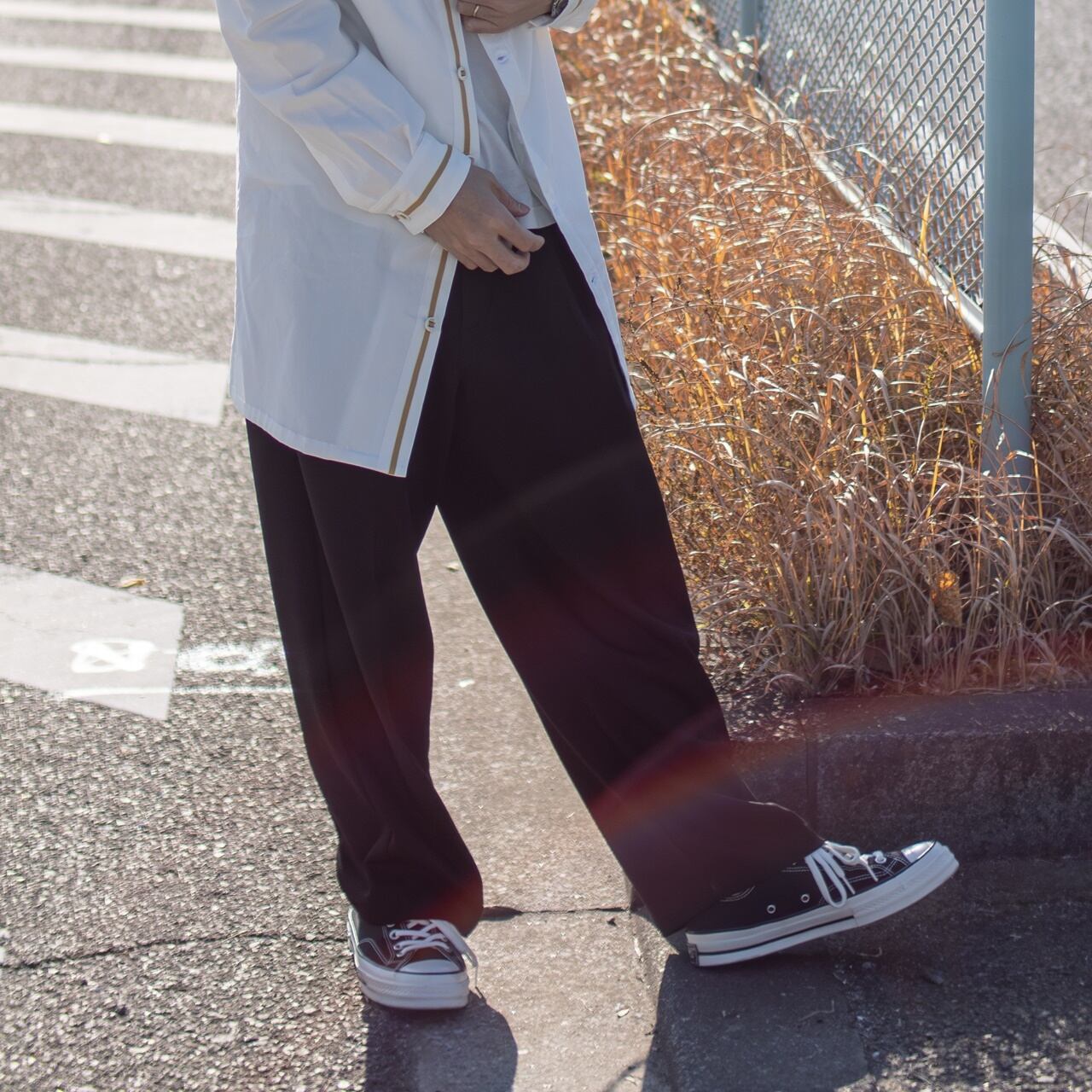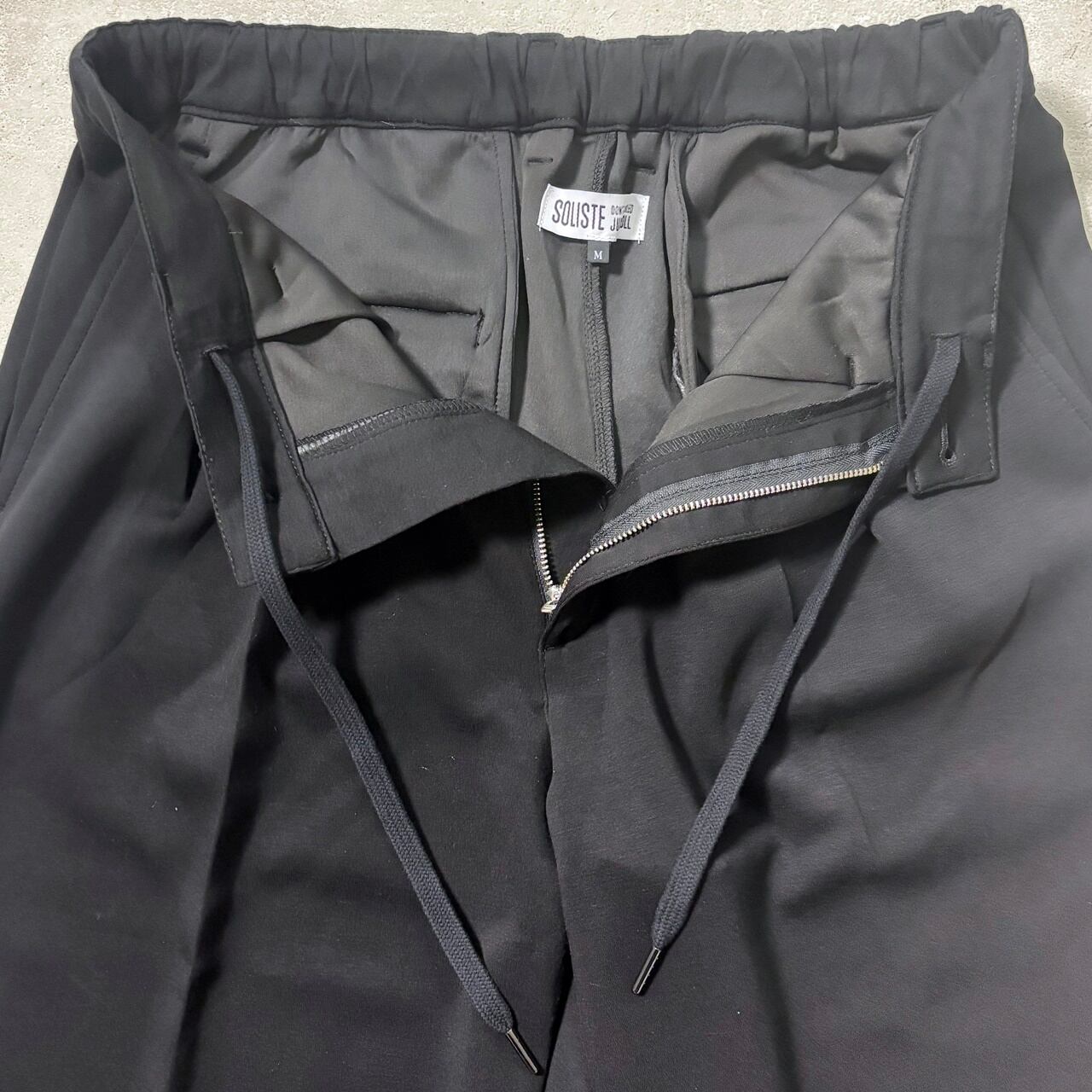 ウエストはゴムと紐で適度なリラックス感があり、くるぶしにかけてややテーバードラインにしており、リラックスながら程よい品のある雰囲気を醸し出します。