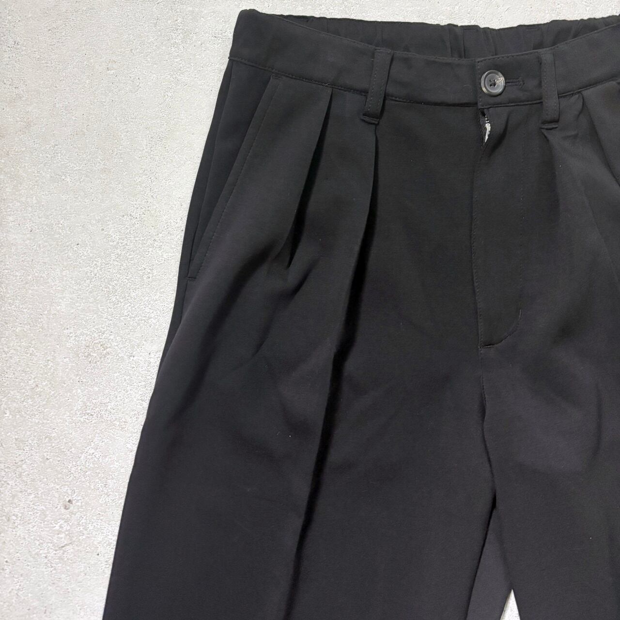 程よい光沢感と落ち感のあるポンチ素材を使用した2タックワイドパンツです。
