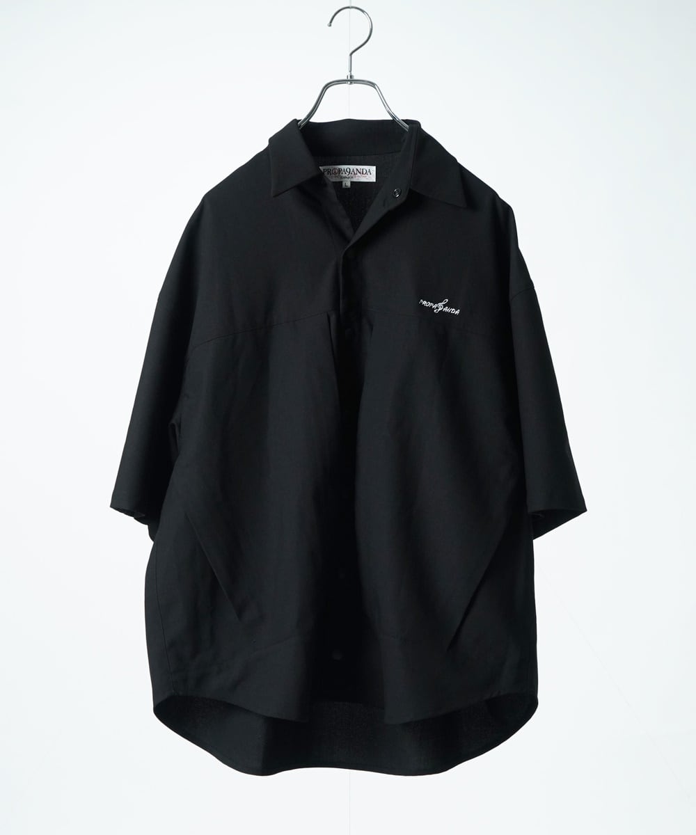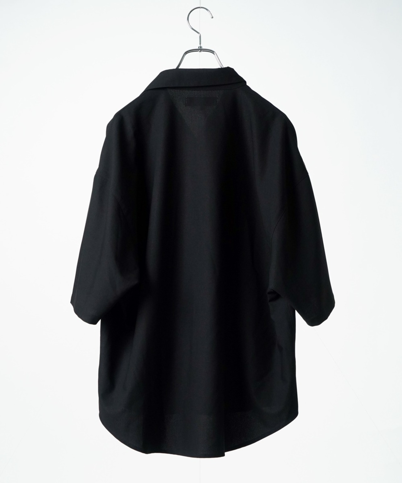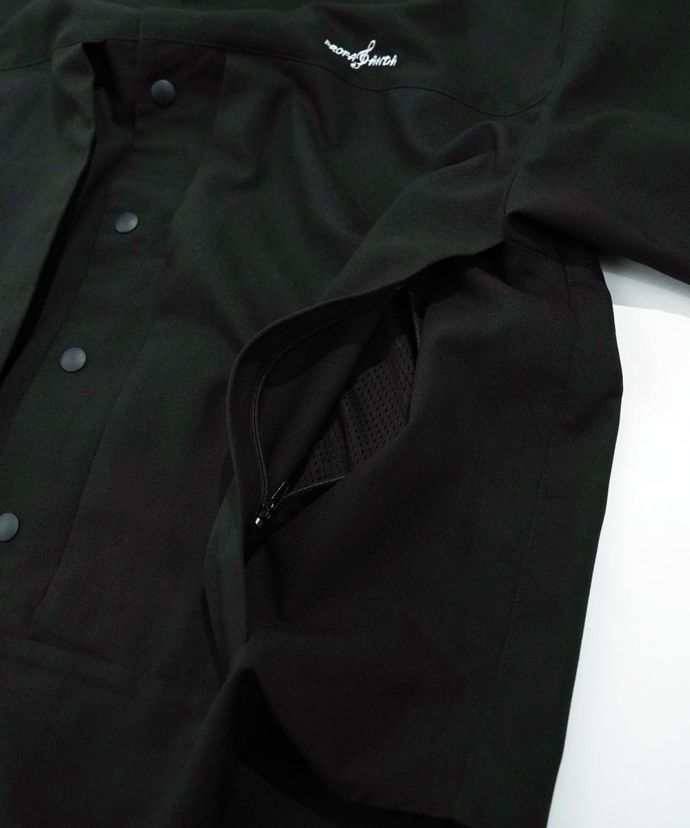 両サイドにポケット、そこに繋がるように、スナップボタン前たての腹部両サイドにもジップがあり、ギミック感も楽しい半袖シャツです。