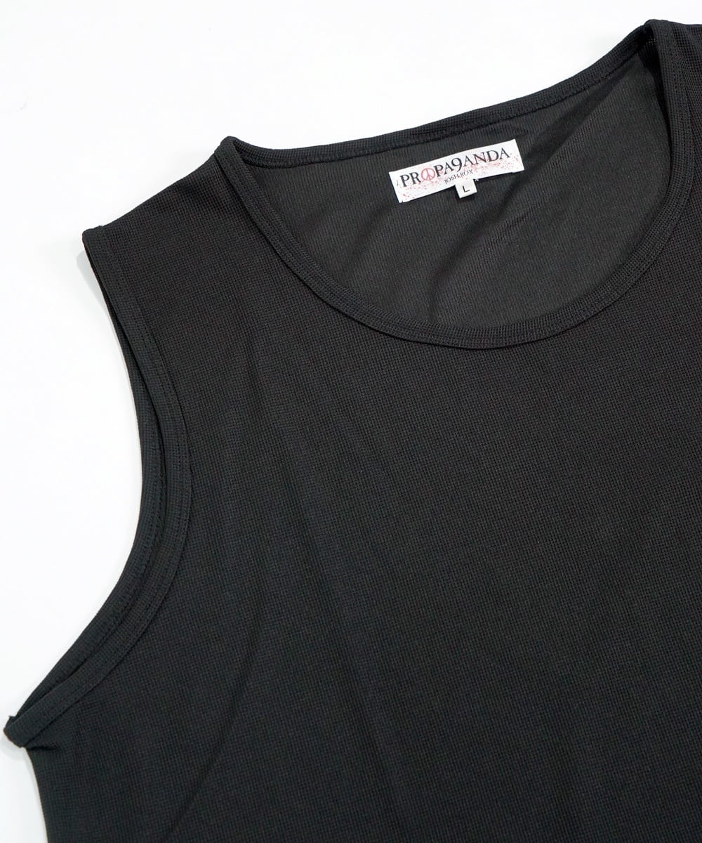 非常に細かいワッフル感ある素材で、本当に軽く涼しげで着心地バツグン、夏に最適なタンクトップです。