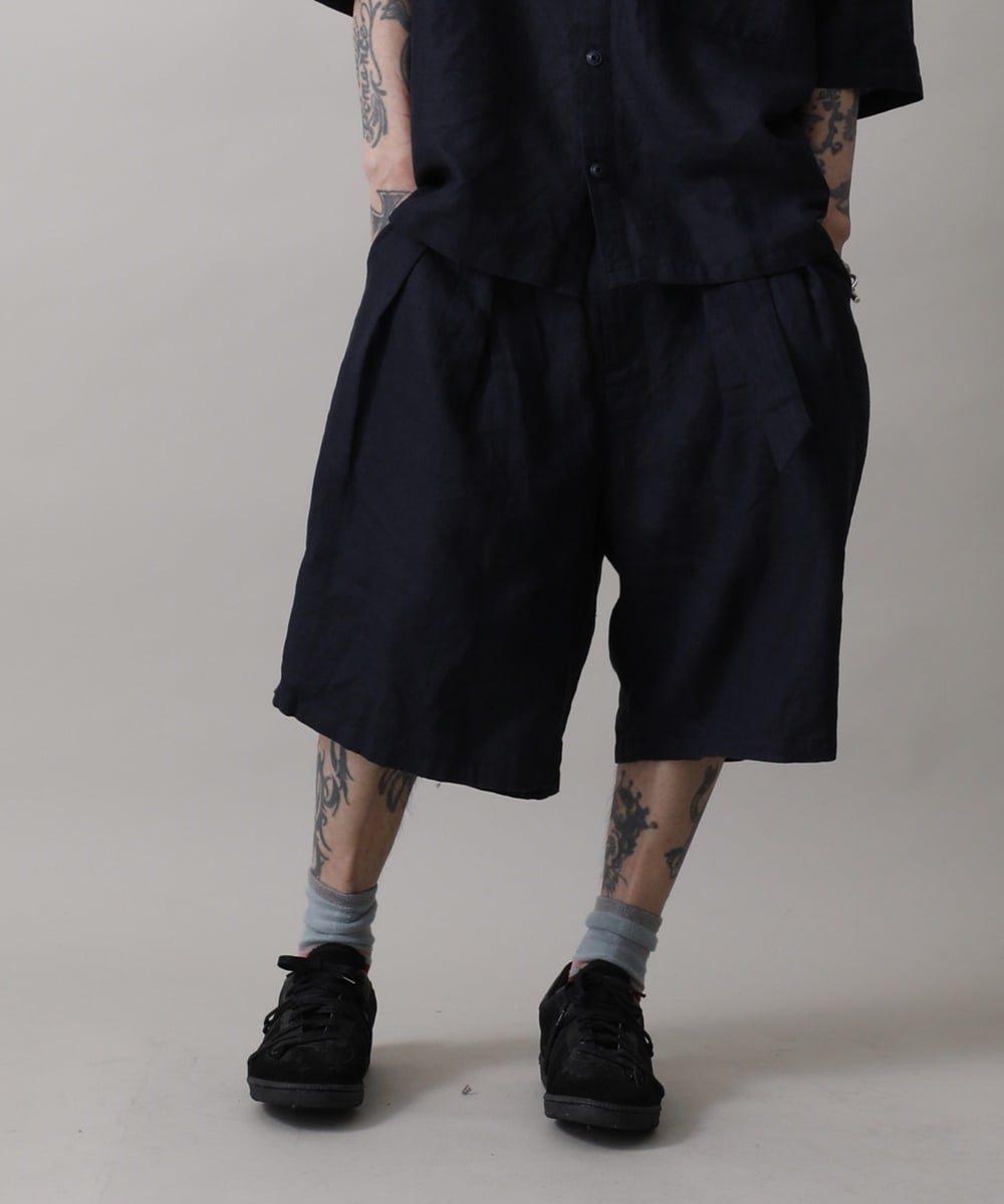麻リネンを使用した、モダン&リラックスなオーバーショーツです。
