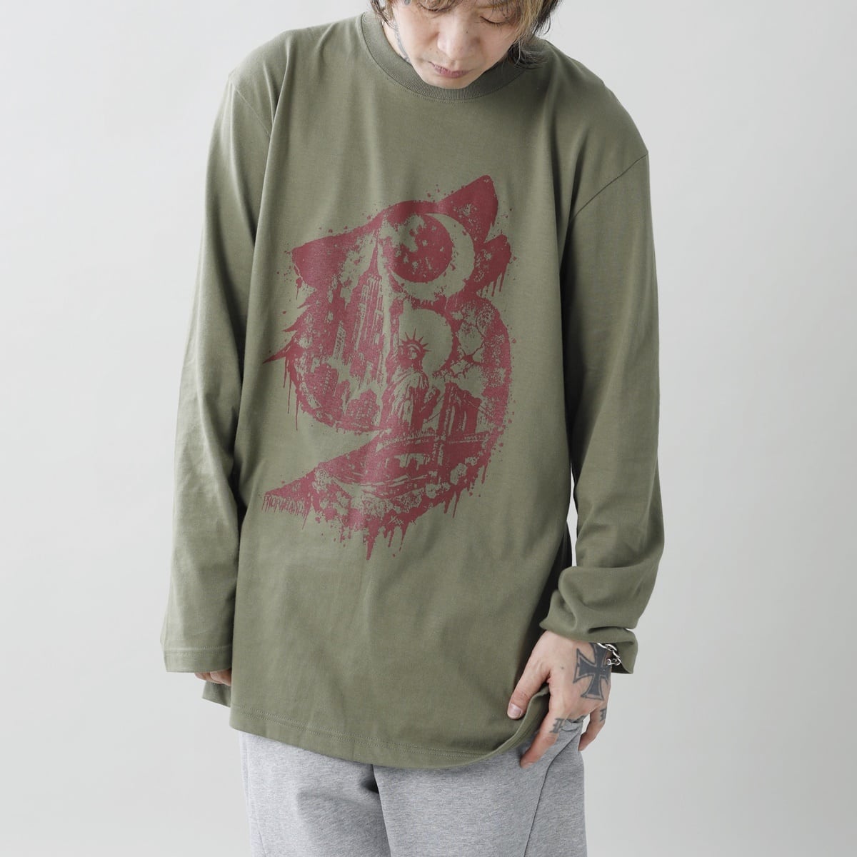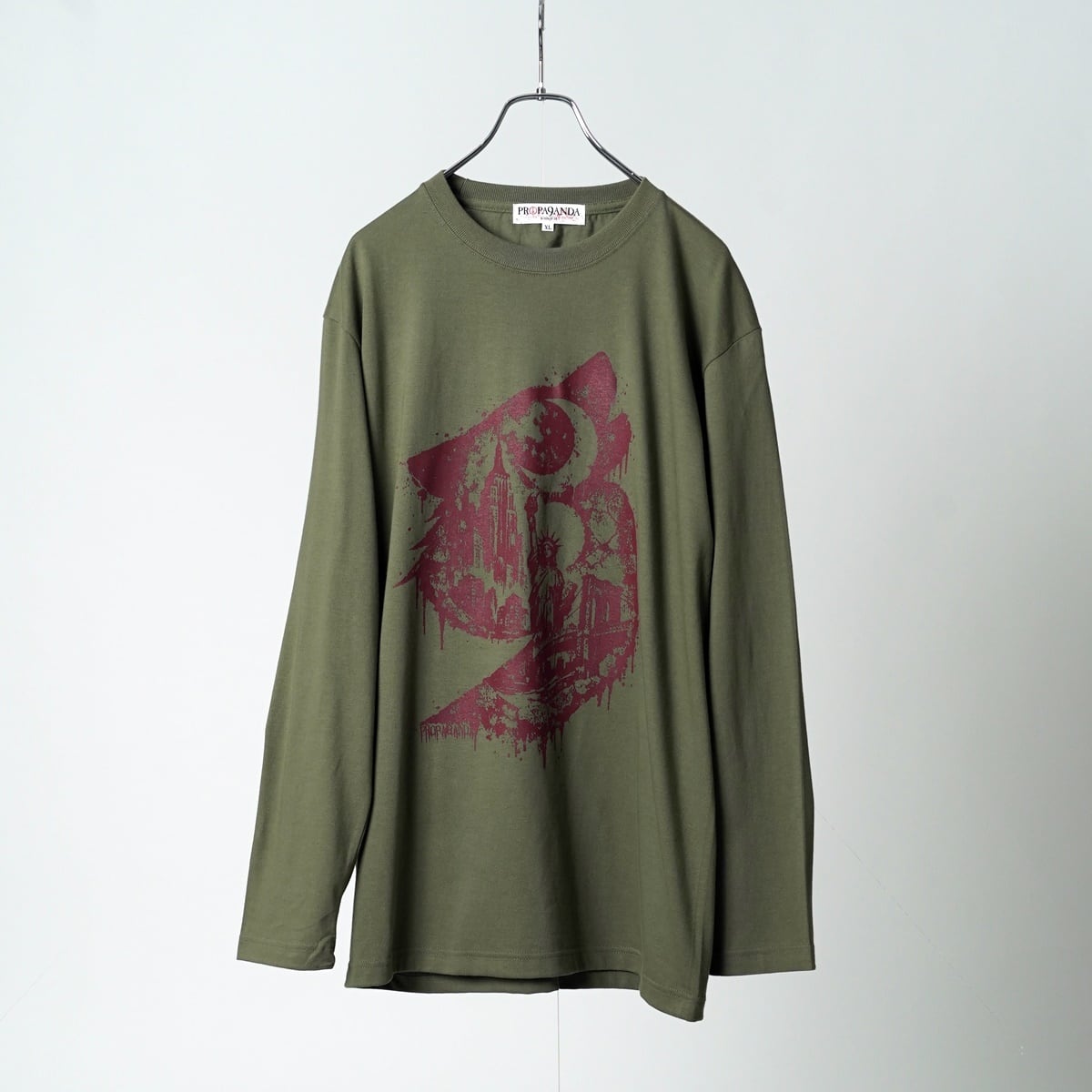 狼とPROPA9ANDAの9をリンクさせたシルエットの中に、月夜の象徴的なNYをフェードインしたグラフィックのプリントベーシックL/S TEEです。